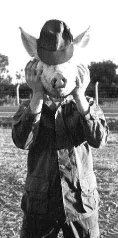 Joe Robinson in his pig disguise.